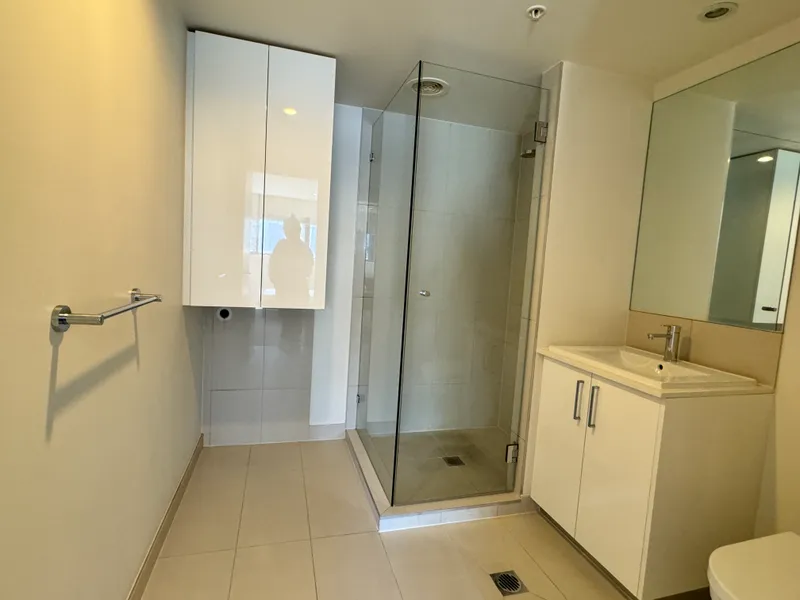 - Contemporary bathroom with private laundry