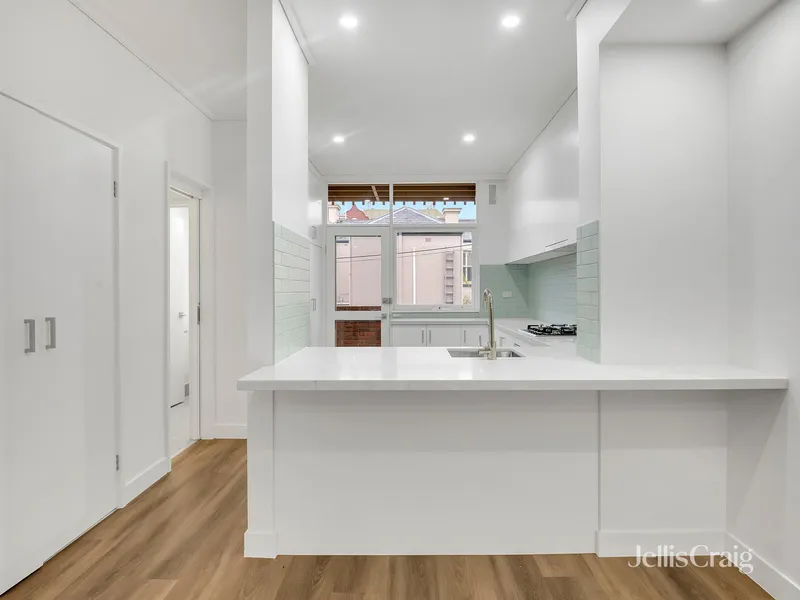 Downstairs, the open plan living and dining area is enhanced by new flooring, LED downlights, and fresh paint throughout. The adjoining kitchen has been fully updated and includes stone benchtops and contemporary cabinetry.