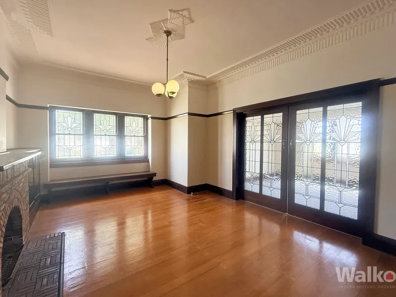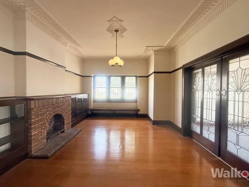Step into this enchanting three-bedroom home, where historic charm meets modern comfort. The impressive entrance foyer invites you to explore the unique features that showcase the home's character, including ornate plaster ceilings and stunning art deco leadlight windows. The original timberwork adds a timeless quality, complemented by beautifully crafted dividing doors.