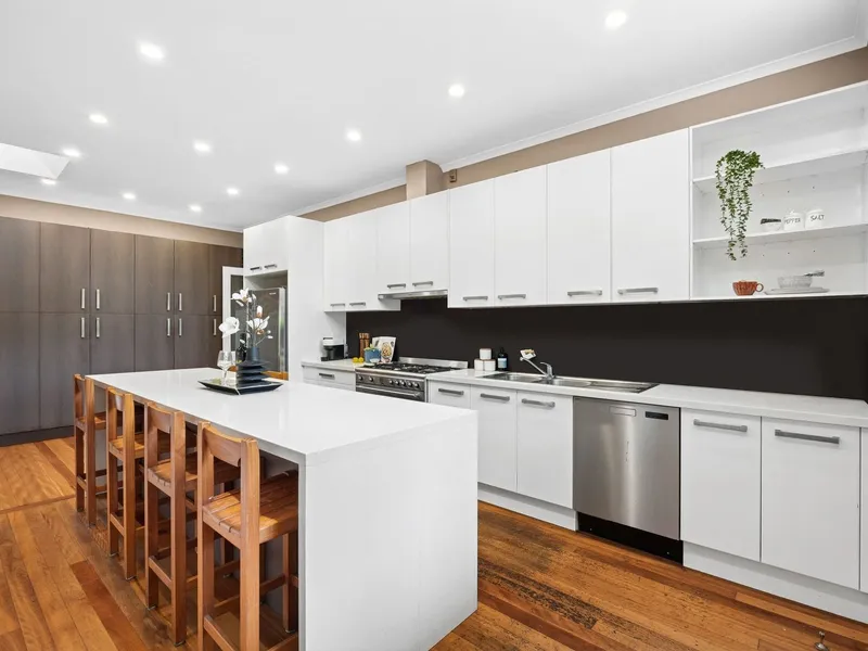 This late victorian residence is on a big block of land within a highly connected Chatswood pocket, balancing heritage charm with generous family space and leafy outdoor living. The original double-brick cottage offers four bedrooms, two bathroom and reveals grand proportions, ornate fireplaces and soaring ceilings that lend a sense of space and style, while a rear extension introduces open-plan living crowned by vaulted timber ceilings. Interiors open seamlessly to an alfresco entertainer's terrace and garden, where an enclosed swimming pool, vegetable beds and mature greenery bask in a sunny northeast aspect. A modern stone kitchen, a flexible fifth bedroom or home office with separate entry, and double garage accessed via Bertram Street add to the practical nature of this home. A level stroll from Chatswood Chase, Chatswood Interchange, the Metro and nearby parks