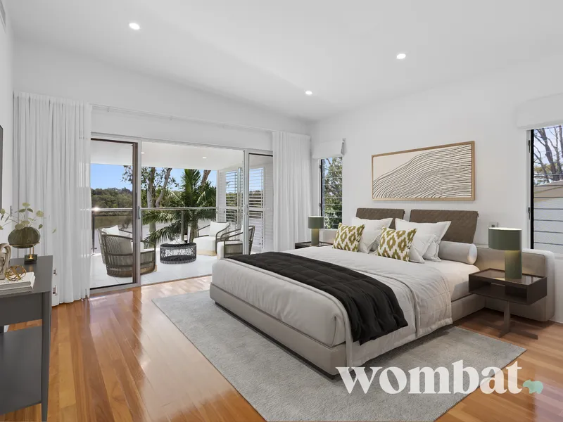 Positioned on the upper level, the master suite is a true parents’ retreat, delivering a simple luxurious escape with uninterrupted river views. Beautiful timber flooring adds warmth and contrast to the light-filled interior, while sliding doors open directly onto a private balcony overlooking the river.
