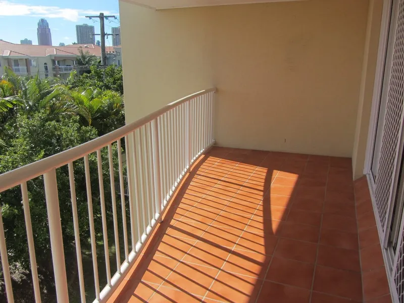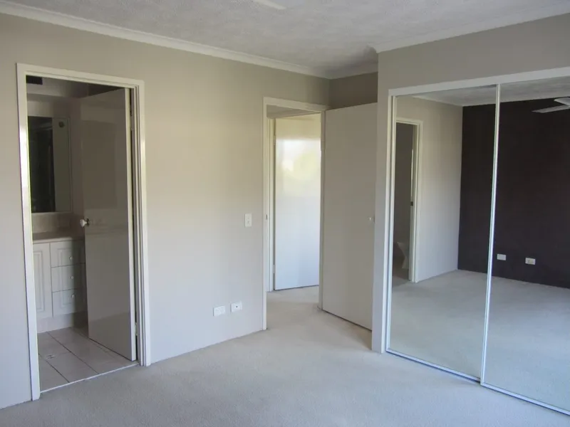 Top-floor 2-bedroom, 2-bathroom apartment in the heart of Chevron Island with North-facing light-filled living areas. The main bedroom features an ensuite, split system air-conditioning, and a private balcony. Both bedrooms have built-in wardrobes and ceiling fans. The apartment will have new carpet and fresh paint ready for the next tenant.
