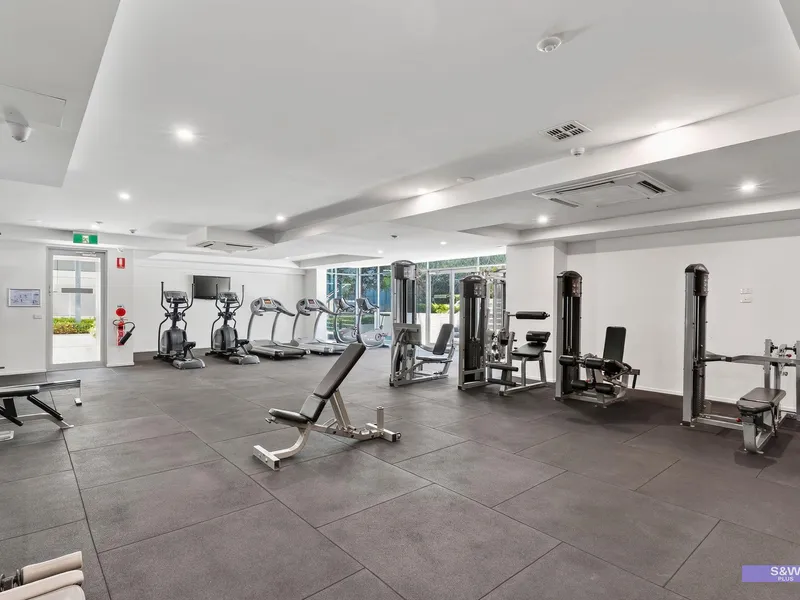 - Complex amenities include: Outdoor heated pool, Gym facilities, Communal BBQ facilities