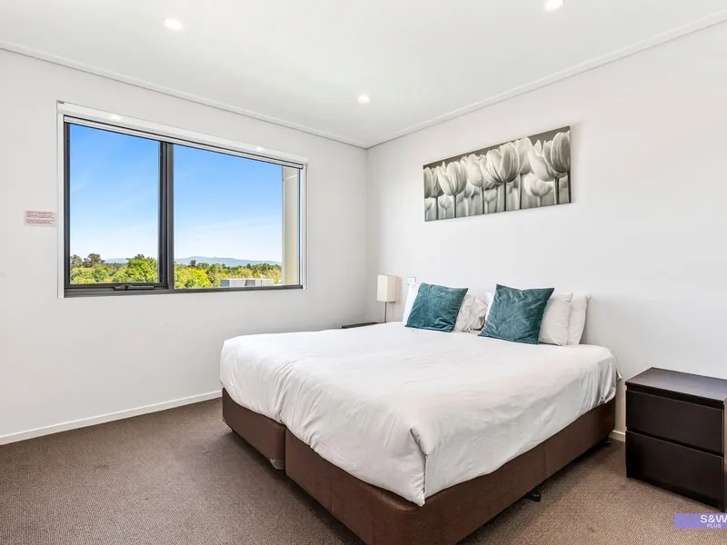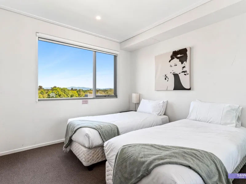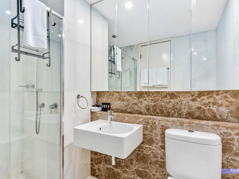 Beautifully appointed and fully furnished, the residence features two spacious bedrooms with two king beds. The primary suite includes a generous walk-in robe and private ensuite, while the second bedroom offers a built-in robe and easy access to the main bathroom. The open-plan living area is complemented by quality, comfortable furnishings, window treatments and an LCD TV, flowing seamlessly to a large wrap-around balcony ideal for relaxing or entertaining. The fully equipped kitchen showcases high-gloss finishes and state-of-the-art appliances including a gas cooktop, microwave, fridge and dishwasher, while both bathrooms feature floor-to-ceiling tiles, spacious showers and mirrored cabinets for practical storage.