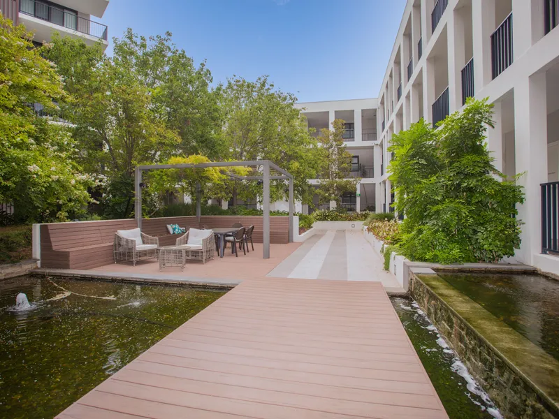 Positioned on the first floor at the quiet end of the complex, the apartment provides privacy. With plenty of natural light to stream through the living area and bedroom, creating a bright and airy feel all day long.