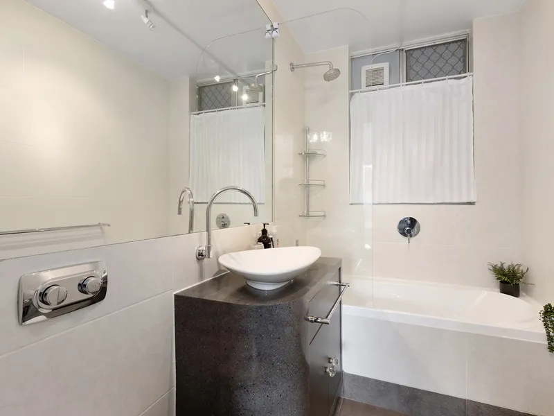 The kitchen is well-appointed with stone benchtops, stainless steel appliances and gas cooking, while the bathroom features sleek floor-to-ceiling tiling. With tasteful furnishings and all essential inclusions, this home offers effortless living from day one.