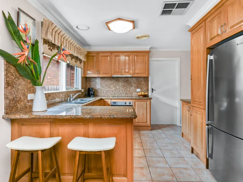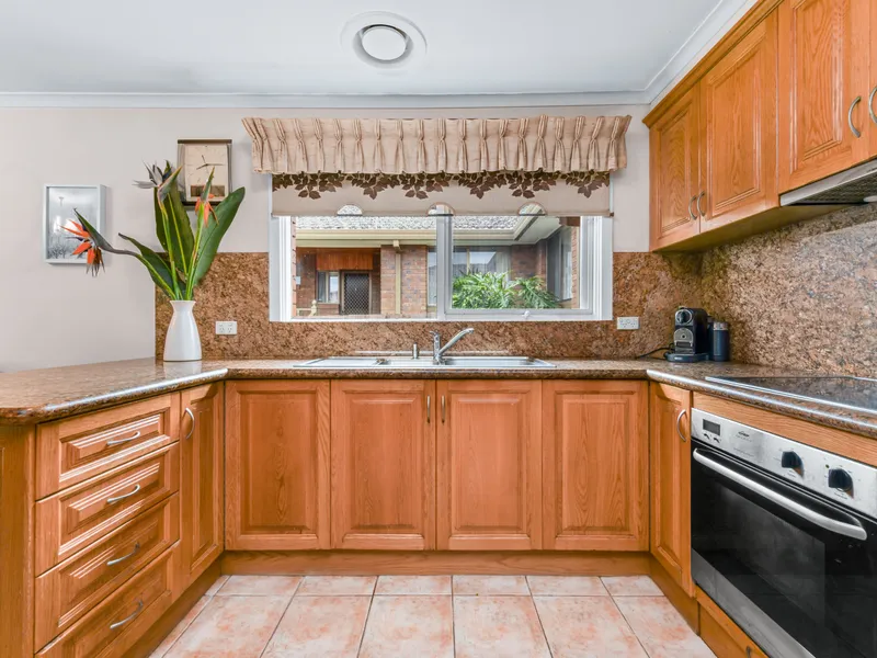 • Beautiful timber kitchen with benchtops, electirc stove, oven, ample storage and adjoining meals/family area
