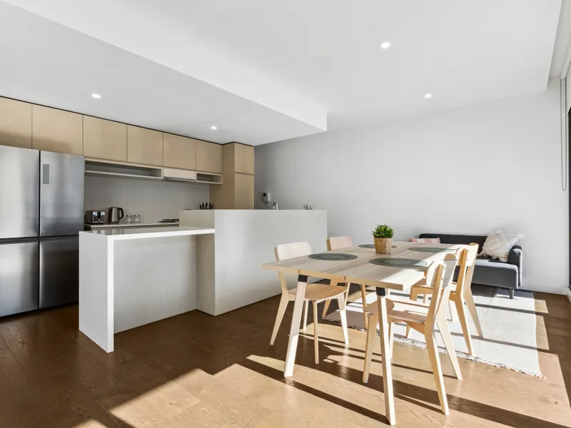Fully equipped with whitegoods, including a fridge, dishwasher, and washing machine.