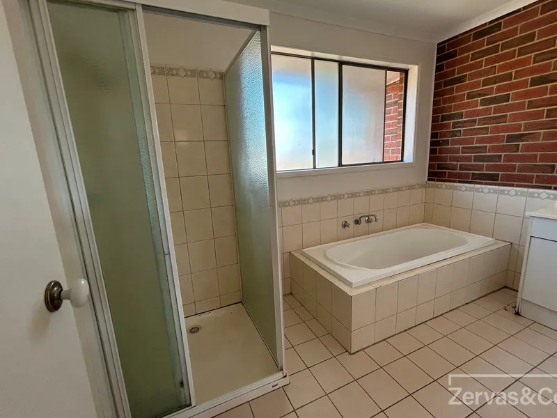 Upstairs there are two large bedrooms with built in robes and one bedroom downstairs also with built-in robes, all bedrooms with quality carpets and blinds. The upstairs bathroom is well appointed with a separate shower, separate bath, and vanity.