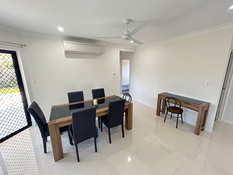 - Living and dining space with ceiling fan, split system air conditioning, LEDs and fully tiled.