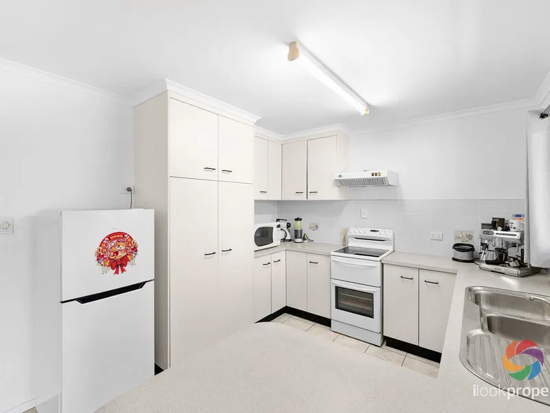 • ?? Central kitchen with freestanding electric oven/cooktop and excellent storage options.