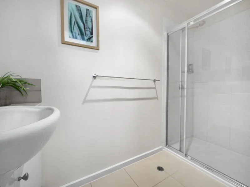 The apartment features a spacious bedroom with a built-in robe, a well-appointed bathroom with a separate shower, and a European laundry for added convenience. A split system air conditioner provides year-round comfort.