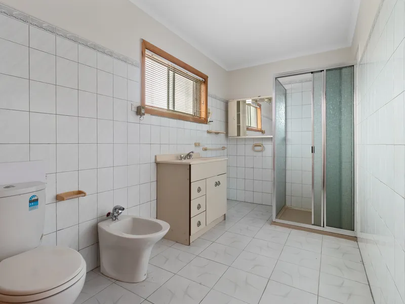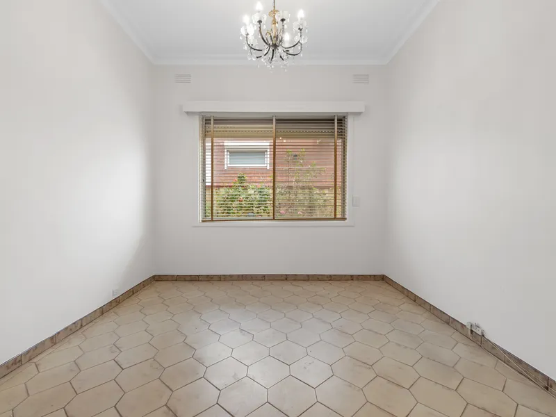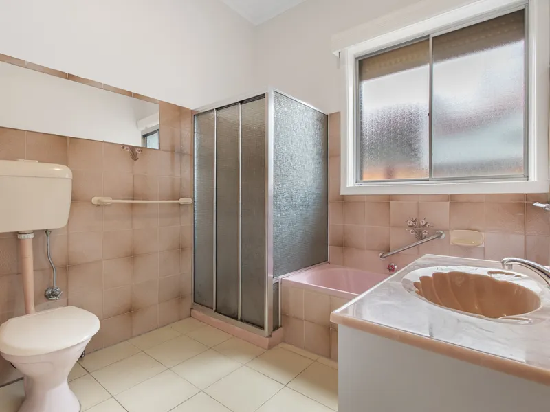Behind its broad and welcoming frontage, the home reveals generous interiors designed for easy day-to-day living. A flexible floorplan includes three well-proportioned bedrooms one conveniently located on the ground floor, all serviced by ample robe storage and retro-style bathrooms on both levels.