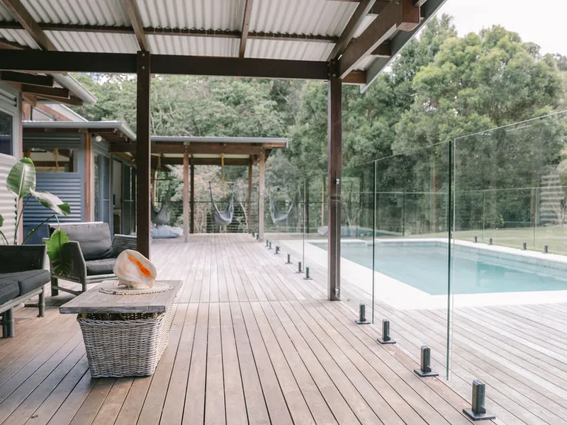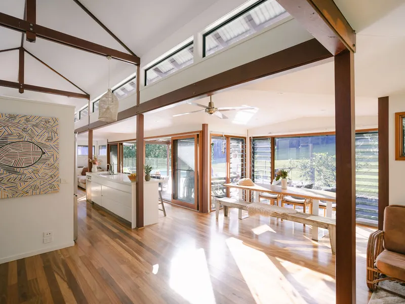 Architectural bush pavilion home and studio is set amongst 30 hectares of natural rainforest and only 2km to broken head beach.