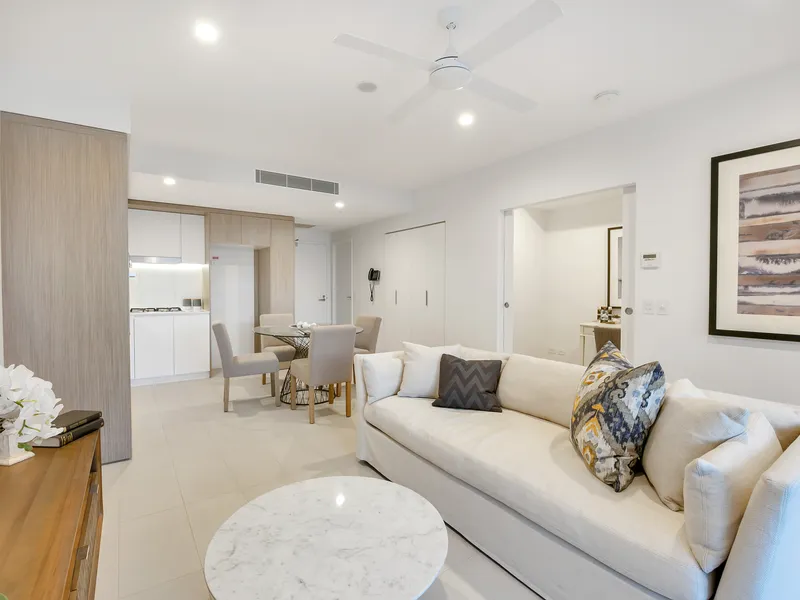Designed for easy living, the apartment features two well-appointed bedrooms with built-in robes and ceiling fans. The master bedroom is complete with air conditioning, a walk-in robe and private ensuite.