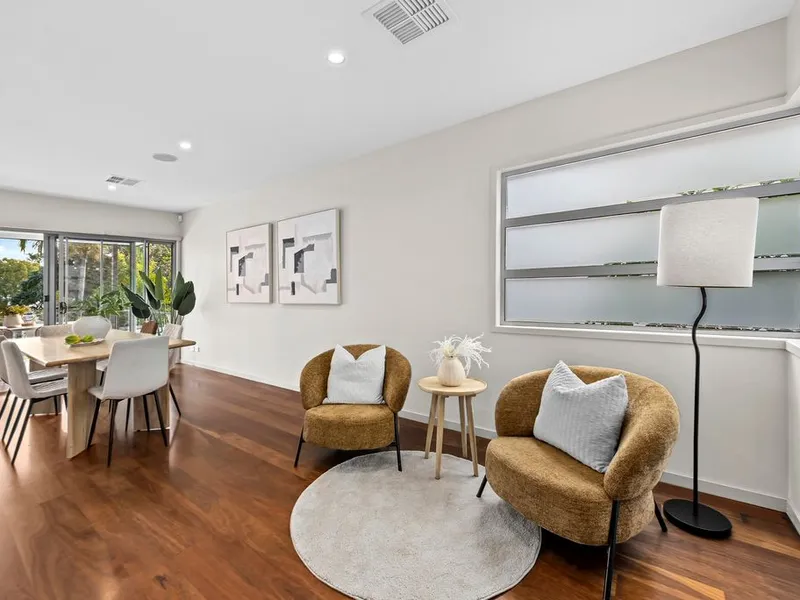 - Open plan living and dining with separate living space, with timber flooring throughout