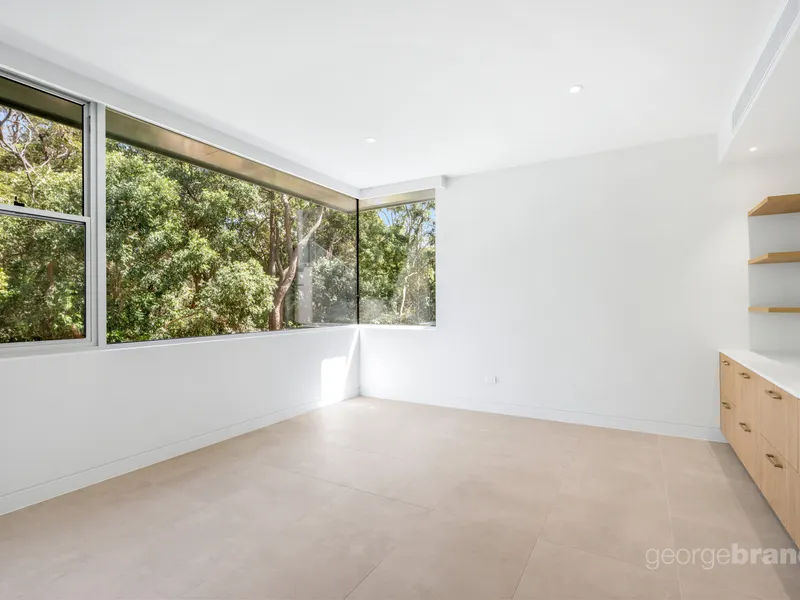 Set on low maintenance landscaped grounds, this brand new 2 storey light filled modern family home is now available for lease. This property has 3 bedrooms, 2.5 bathrooms, open plan kitchen plus living and dining areas as well as a separate downstairs living/entertainment area. In addition, there is a thoughtfully designed, separate home office space, ideal for working from home. Large picture windows capture ocean and bushland views with covered upper and lower balconies perfect for outdoor relaxation. This property has European appliances; built in joinery (including WIR in master bedroom and wardrobes in other bedrooms) with generous storage on site. There is a double lock up garage and internal laundry with Miele appliances. Floors are tiled throughout with underfloor heating in bathrooms/laundry as well as reverse cycle air conditioning.