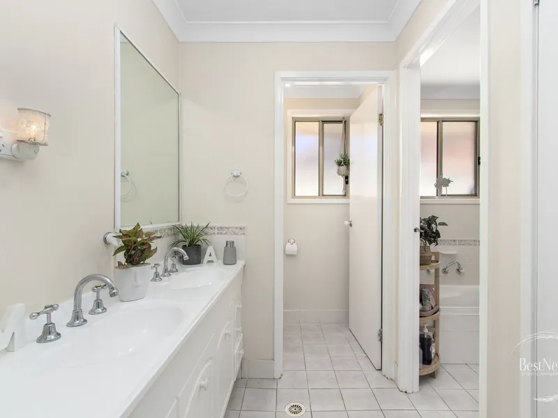 Enjoy multiple living areas to suit all the family with a formal lounge, informal meals area and a large enclosed sunroom for entertaining, along with the kitchen which overlooks the sunroom and has ample storage, plus dishwasher and electric appliances. There is a separate internal laundry close by, and neat three way bathroom with bath plus shower, and ensuite access to the master bedroom. Each of the four bedrooms are well sized with ceiling fans, three featuring built ins; and you can keep comfortable year round with ducted air conditioning and a bonus split system in the lounge.