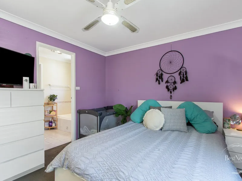 The easy care grassy back yard has a two garden sheds, and there is a garage converted to a storage room to utilise, with the home perfectly positioned close to a wide choice of schools, shops and transport.