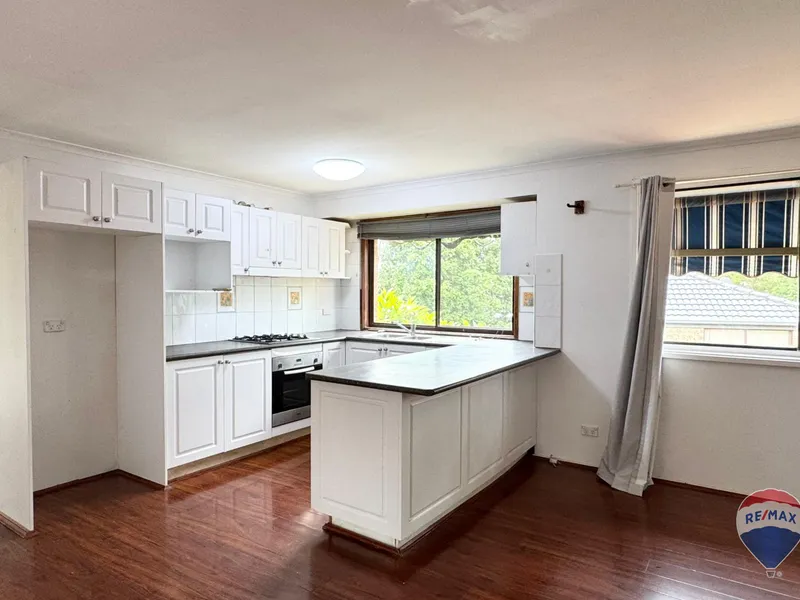 This spacious property offers a versatile layout with 3 bedrooms upstairs and 2 additional bedrooms downstairs, perfect for large families or those needing extra space. Upstairs, you'll find two generous living rooms, providing ample space for relaxation and entertainment. The contemporary kitchen is a highlight, featuring a gas cooktop, breakfast bar, and plenty of storage, making meal preparation a breeze.