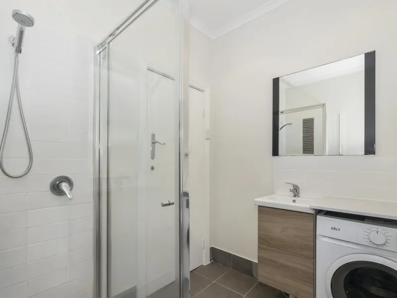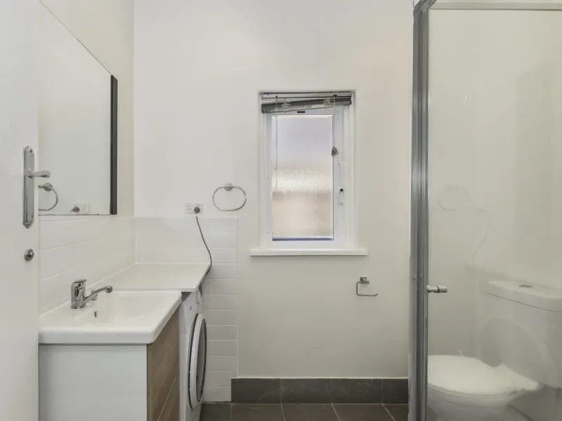 As you step inside, you're greeted by gleaming Jarrah floorboards, soaring 3.1-metre ceilings, picture rails, and ornate architraves, creating a warm and inviting ambiance. The thoughtfully designed kitchen features stone benchtops, gas appliances, and fully integrated dishwasher, fridge, and freezer. The recently renovated bathroom includes a convenient laundry facility.