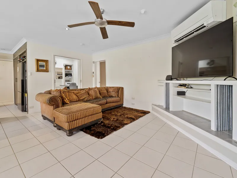 The home offers four versatile rooms, including three generously sized bedrooms with timber-look vinyl flooring, all centrally located to the large, modern bathroom. The fourth room can easily function as a bedroom, study, media room or additional living space to suit your needs. The main bedroom enjoys convenient two-way access to the bathroom.