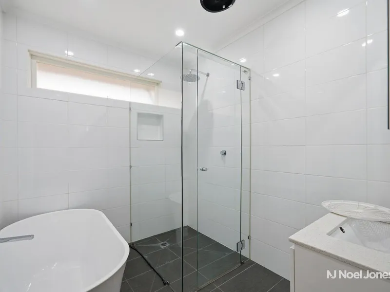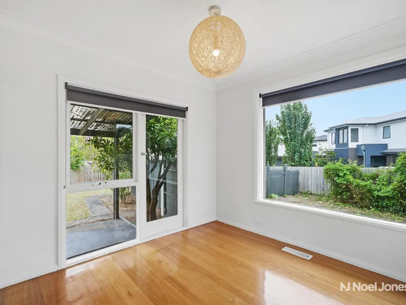 Inside, soaring ceilings, polished timber floors and a sunlit lounge create a warm and welcoming feel. A sleek galley-style kitchen with quality appliances and excellent storage sits alongside a dedicated dining area, while the covered alfresco overlooks a large, private backyard ideal for children, pets and year-round entertaining.