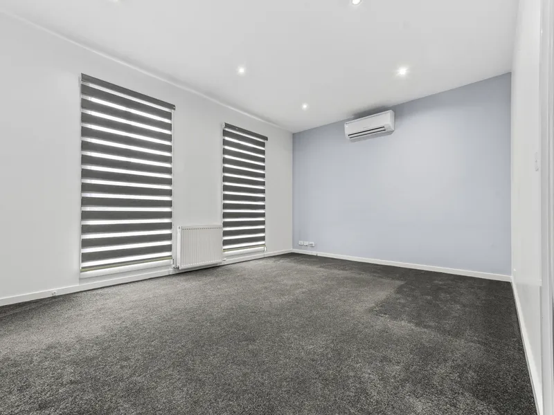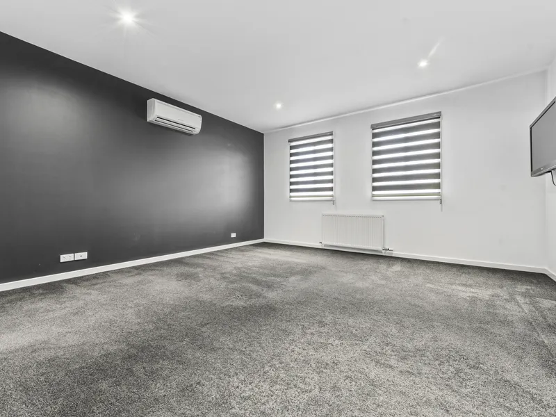 Large two-storey home in great location walking distance of everything Dandenong offers. Downstairs features a main carpeted living area with a mounted TV included in the tenancy, adjoining dining area with floorboards and a split system. Kitchen with stainless steel appliances, including a dishwasher, gas cooktop, electric oven and a newly installed rangehood. Plenty of cupboard space. Tiled large laundry, powder room with shower and vanity and a separate toilet. One bedroom with carpet, mirrored built in robes and split system. Under-stair storage completed the downstairs level. Upstairs carpeted master bedroom with walk in robe, grey feature wall, spacious modern ensuite and split system. Additonal 2 carpeted bedrooms with mirrored built-in robes and split systems. Main bathroom with large spa bath, seperate shower and vanity. A separate toilet completes the upstairs level. Single garage with kitchenette. No lawn maintenance. Small concrete backyard and a secure, neat front yard.