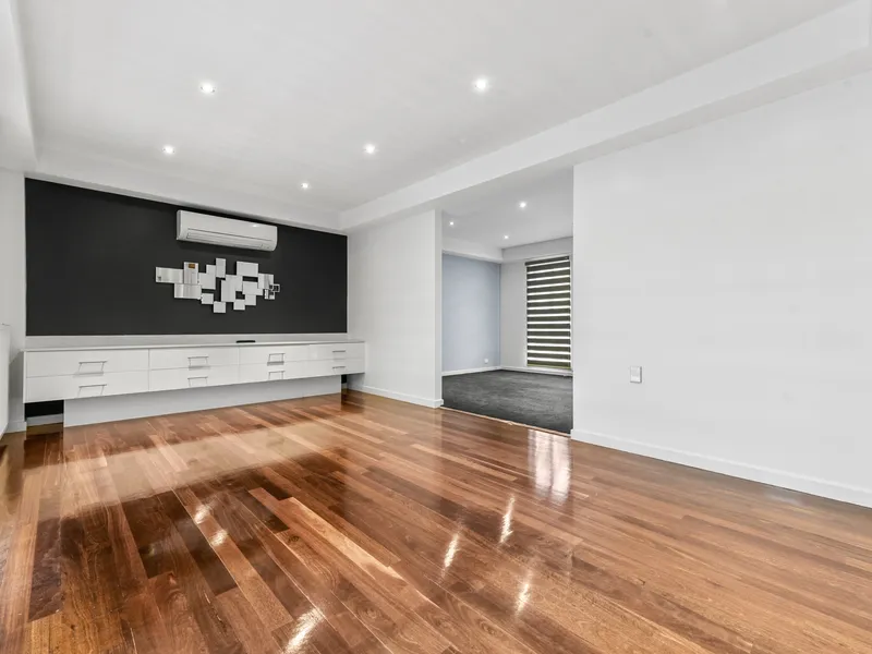 - Carpeted bedrooms with feature walls.