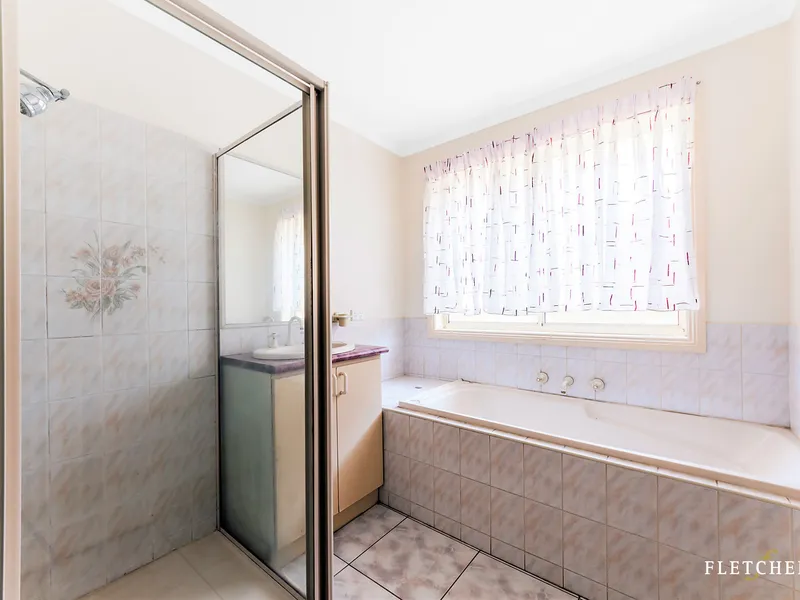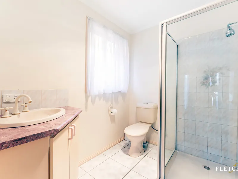 The main bedroom features a walk-in robe and ensuite, with the remaining two bedrooms fitted with built-in robes. The kitchen includes a dishwasher, gas cooktop, electric oven and ample bench and cupboard space for everyday convenience.