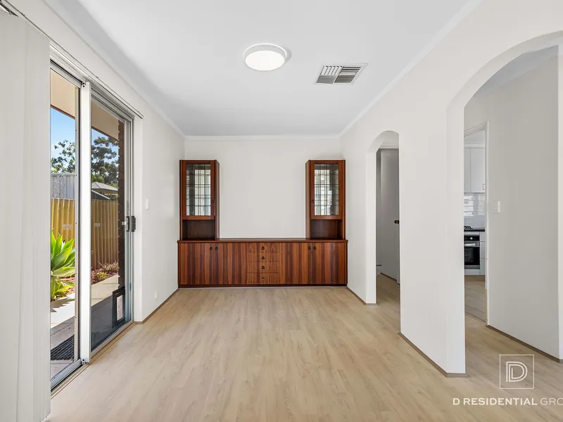 Inside, the home features three well-proportioned bedrooms, all with robes, a spacious living area, and a separate dining space adjoining a beautifully renovated kitchen complete with ample storage and quality appliances. Brand new carpets have just been installed, adding a fresh and comfortable feel throughout.