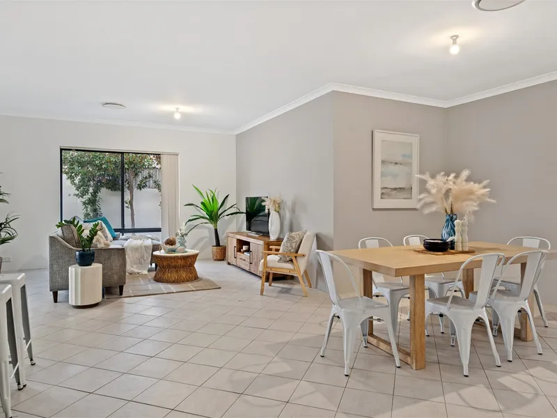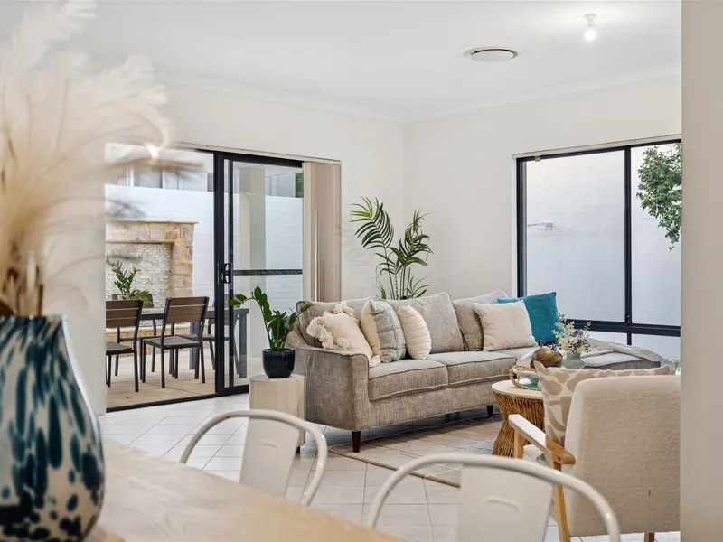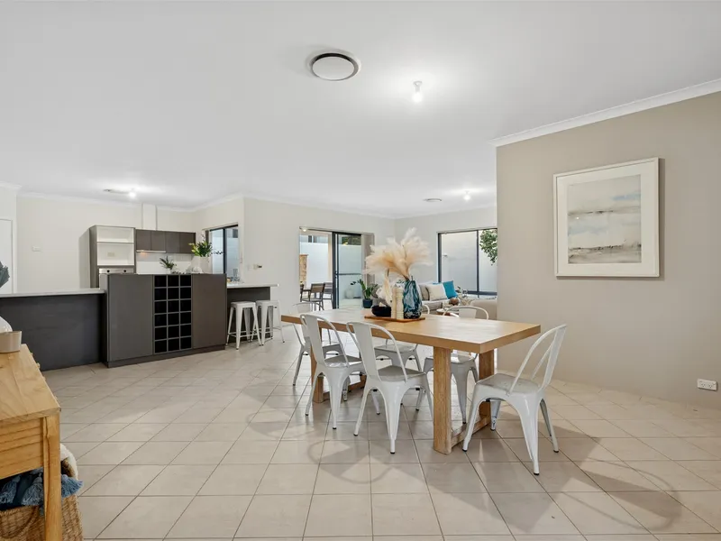 The bright and airy open-plan living area seamlessly integrates the kitchen and dining spaces, extending to a low-maintenance alfresco area—perfect for entertaining or relaxing with family and friends.