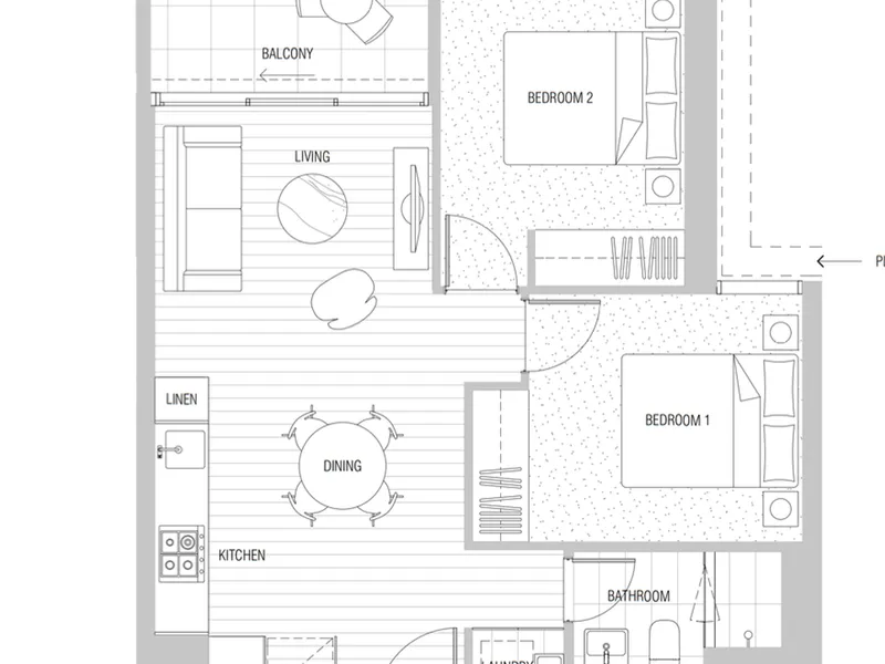 The thoughtfully designed open-plan living and dining area is enhanced by full-height glazing, creating a bright and inviting space that seamlessly connects to a private balcony - perfect for morning coffee or evening unwind. Both bedrooms are generously sized with built-in robes