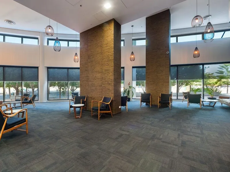 Positioned on the 9th floor of the popular Victoria Point complex, the apartment captures impressive outlooks across Docklands Park and towards Port Phillip Bay, which can be enjoyed from the spacious full-width balcony. The light-filled interior features an open-plan living and dining zone with a practical study corner, ideal for working or studying from home.