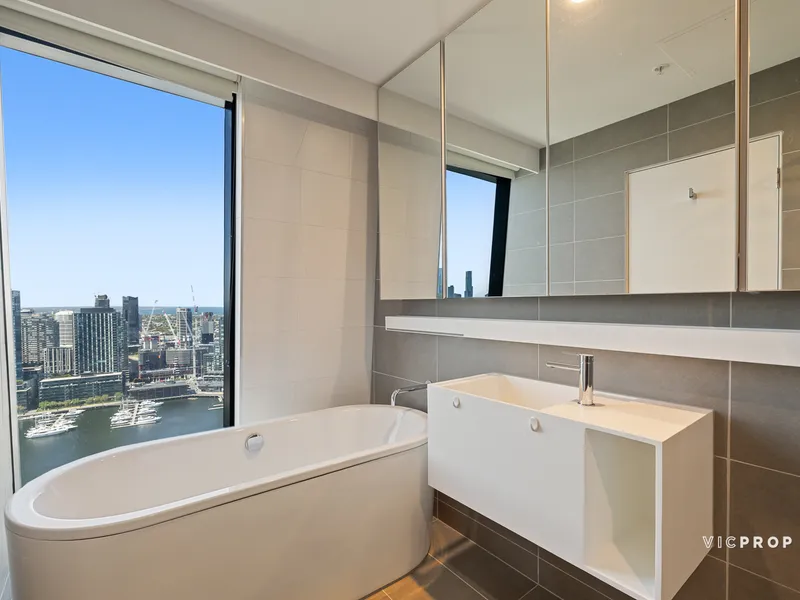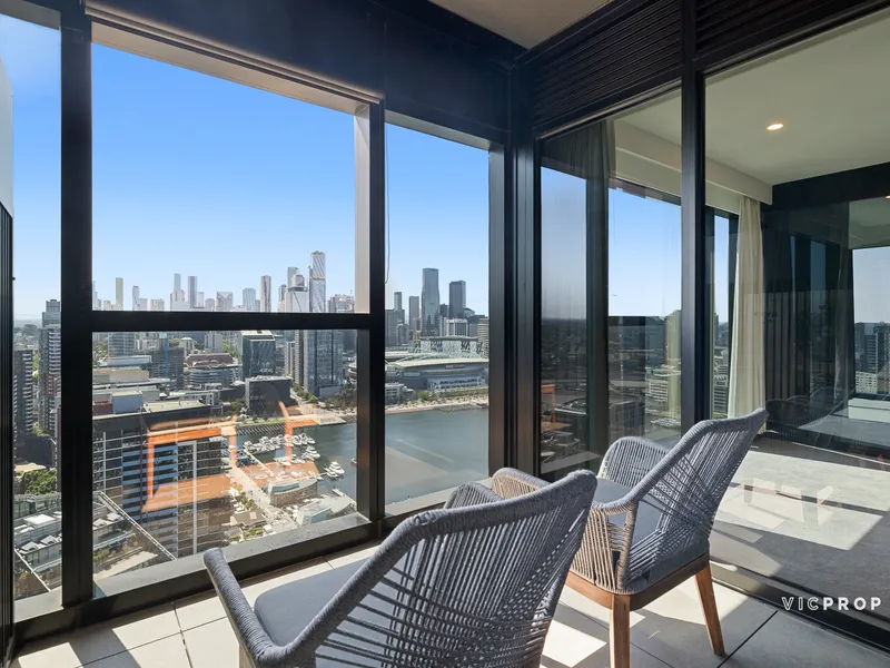 A sky-high showcase of stunning views, this spectacular corner 3 bedroom, 3 bathroom dual-level apartment adds a dazzling designer dimension to the Docklands precinct. Placed to perfection 34 floors high in the highly prized Marina Tower complex, head downstairs and the best of Melbourne opens up for you. Take a short stroll to Docklands Primary School, NewQuay dining, Victoria Harbour, free city trams, Southern Cross trains, the Capital City Trail and shopping choice at The District.