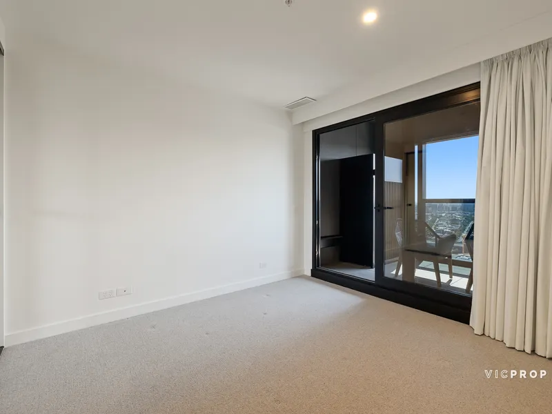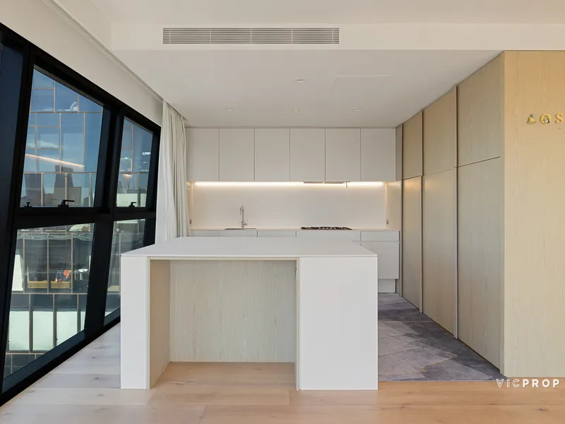 Floor-to-ceiling glass hems this radiant retreat and reveals a breathtaking panorama extending across West Melbourne, Victoria Harbour, Marvel Stadium and the spectacular city skyline. Dedicated open space for wide-reaching living and dining pivots a chef-ready kitchen boasting sleek stone surfaces and premium Miele appliances including an integrated dishwasher. The finest fixtures and fittings have been sourced to ensure every possible comfort level is met and exceeded in this sleek workspace. Bright apartment inside and out, make a seamless transition to two covered balconies and immerse yourself in the picturesque views on display. Relax, indulge, and be captivated by the nightly sunsets — a truly distinctive highlight.