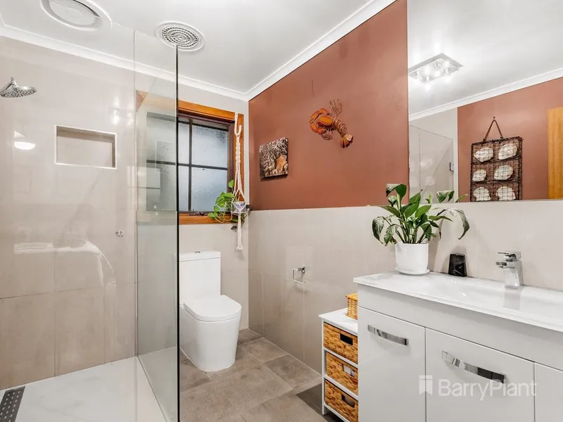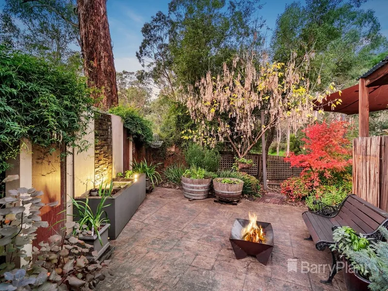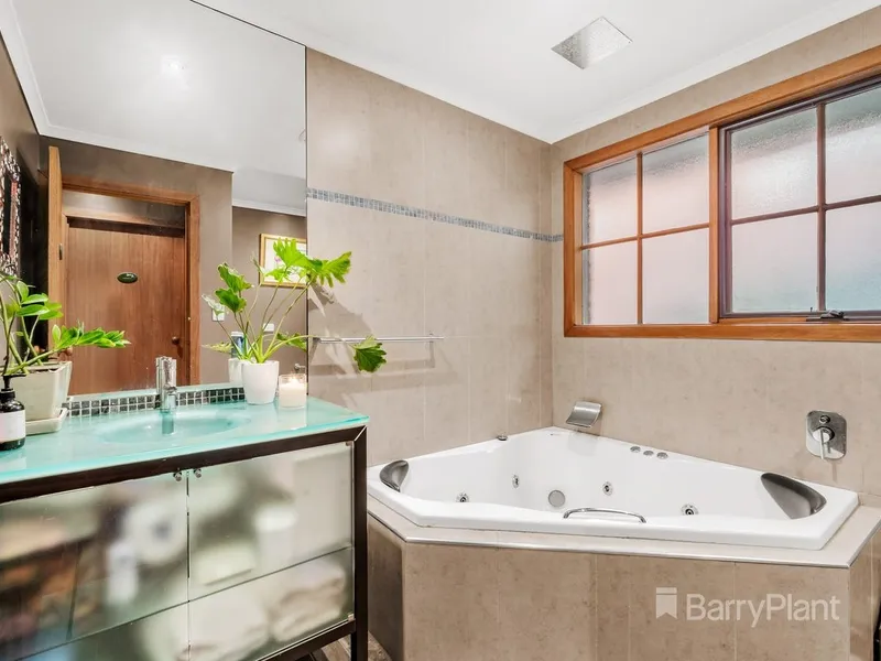 Step outside to a spacious entertainer’s deck with outdoor spa, perfect for enjoying the peaceful parkland backdrop.