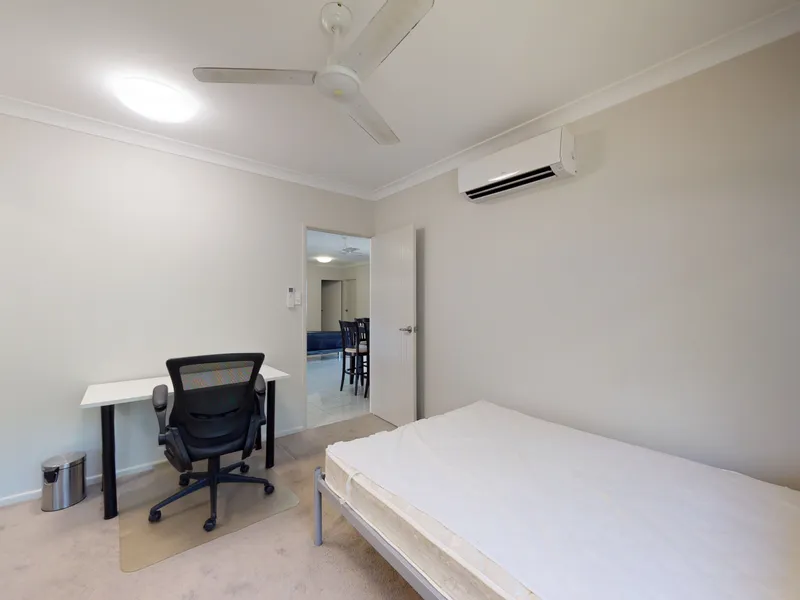 This spacious student accommodation offers tiled in living areas and has carpet in the bedrooms. There is six bedrooms and four bathrooms in the property. Very spacious kitchen with separate dining area space to accommodate the sharing. Lots of couch space in the lounge and plenty of studying or relaxing area outside. There is split system air conditioners throughout the property.