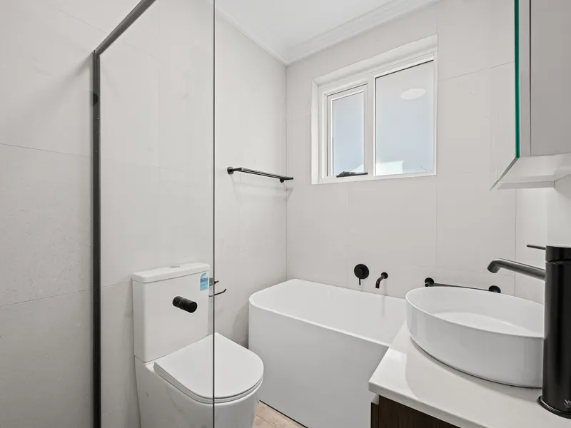- Fully tiled bathroom with separate bath and shower