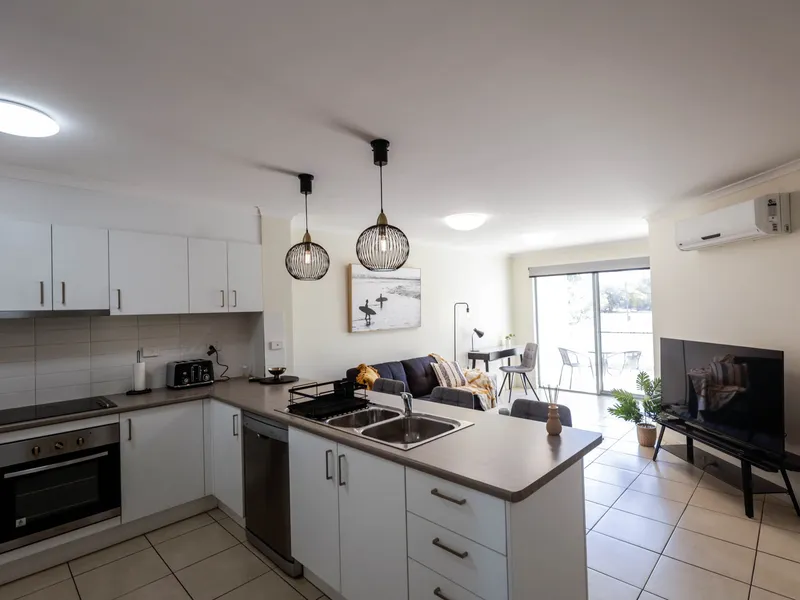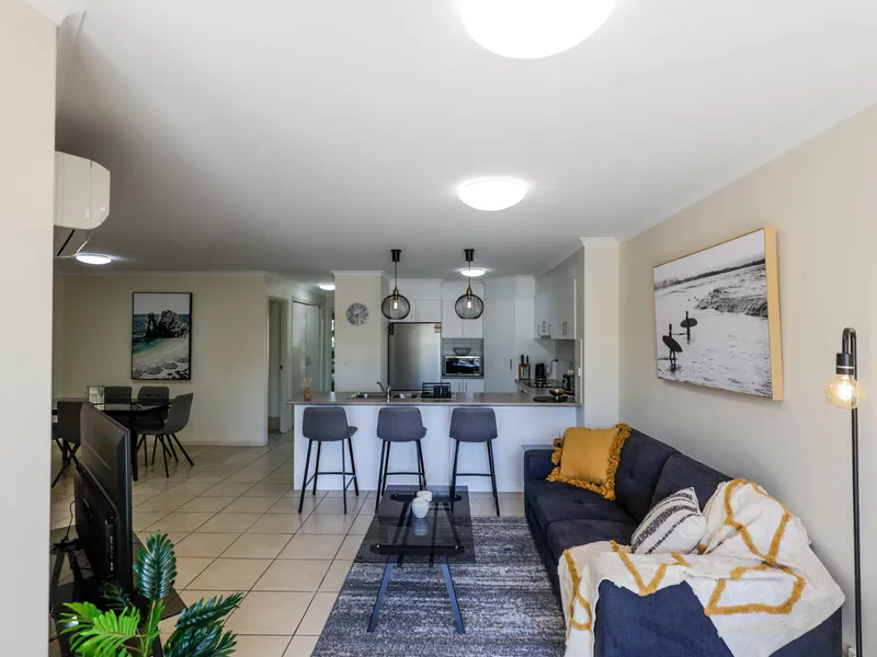 Boasting three generous sized bedrooms all beautifully furnished with queen sized beds, completed with split system air-conditioning and built-in wardrobes, main bedroom with modern en-suite.