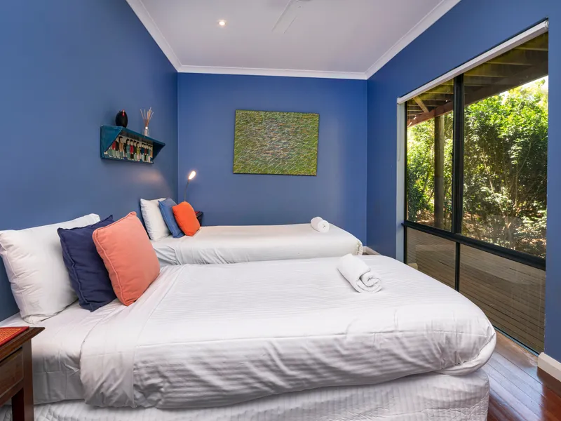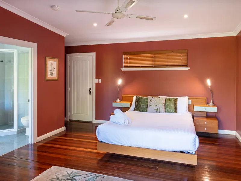 Downstairs you will find a room with 2 x single beds and another room with a further king bed which can be made into 2 x singles if needed. There are 2 other master bedrooms with queen beds and ensuite all with an external entrance. The main master bedroom is on the second floor with a king bed and ensuite.