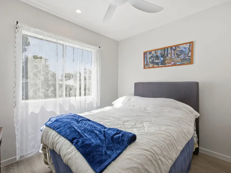 This modern two-bedroom granny flat offers low maintenance living with its own private space, making it perfect for singles or couples.