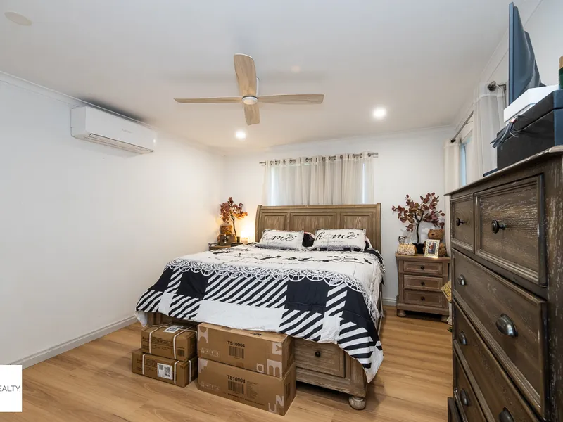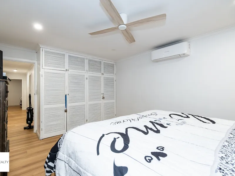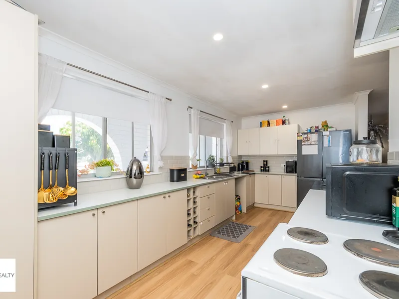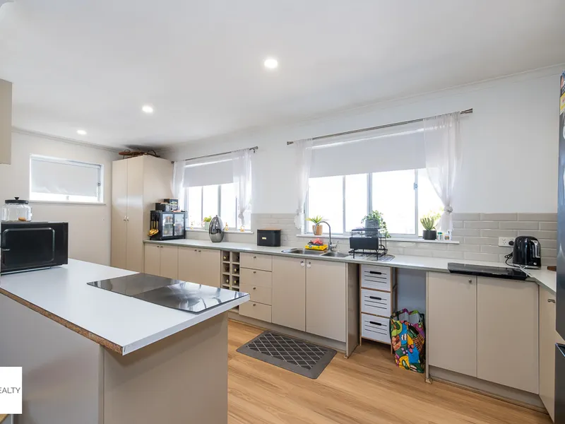 Set on a large block, the home features a light-filled open-plan kitchen, living, and dining area that flows through to a covered outdoor patio — perfect for everyday living and entertaining.