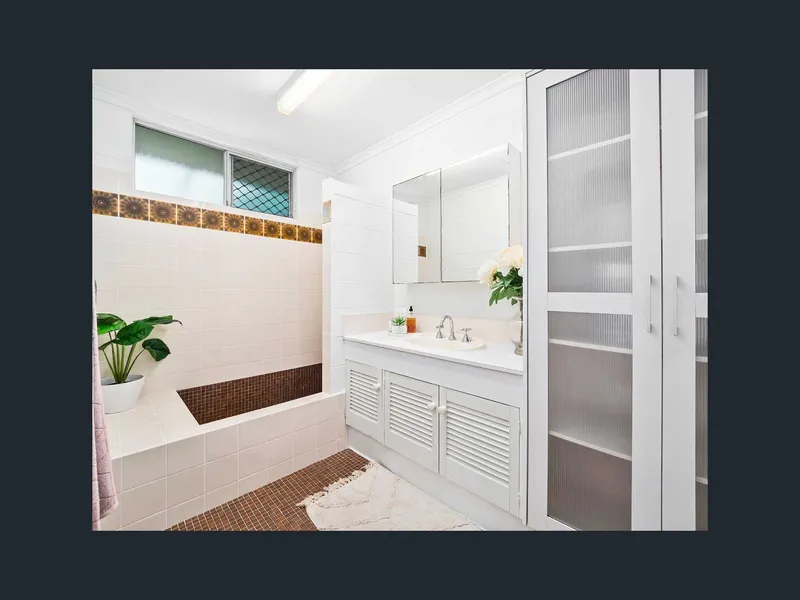 The home features three well proportioned bedrooms, highlighted by an oversized master retreat complete with dual wardrobes. The remaining bedrooms are generous in size, one with a built-in robe, both complemented by air conditioning for year round comfort. The original bathroom brings a touch of nostalgic charm, with its statement Roman bath and functional layout.