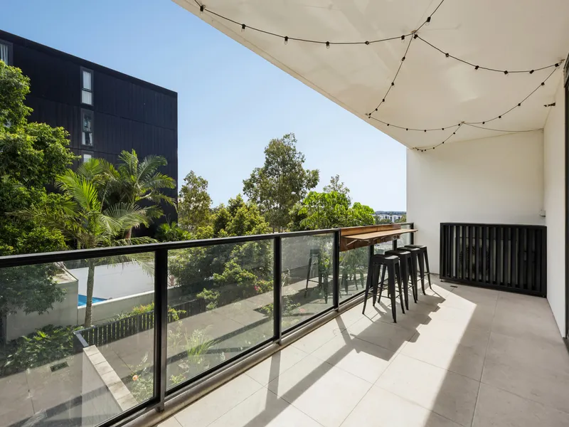 - Light-filled open plan living and dining area designed for comfort and functionality, seamlessly flowing onto a private balcony with elevated views