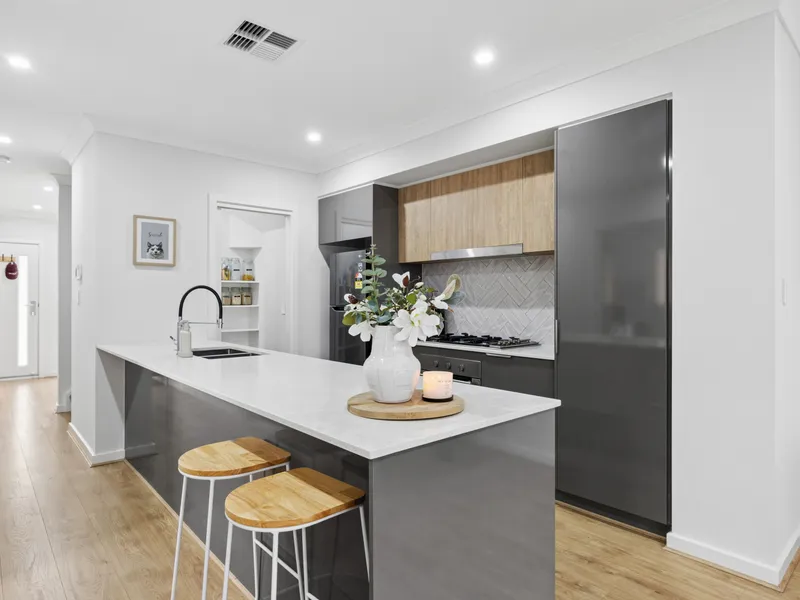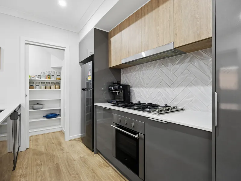 - Modern kitchen with island bench, walk in pantry, gas cooktop and dishwasher