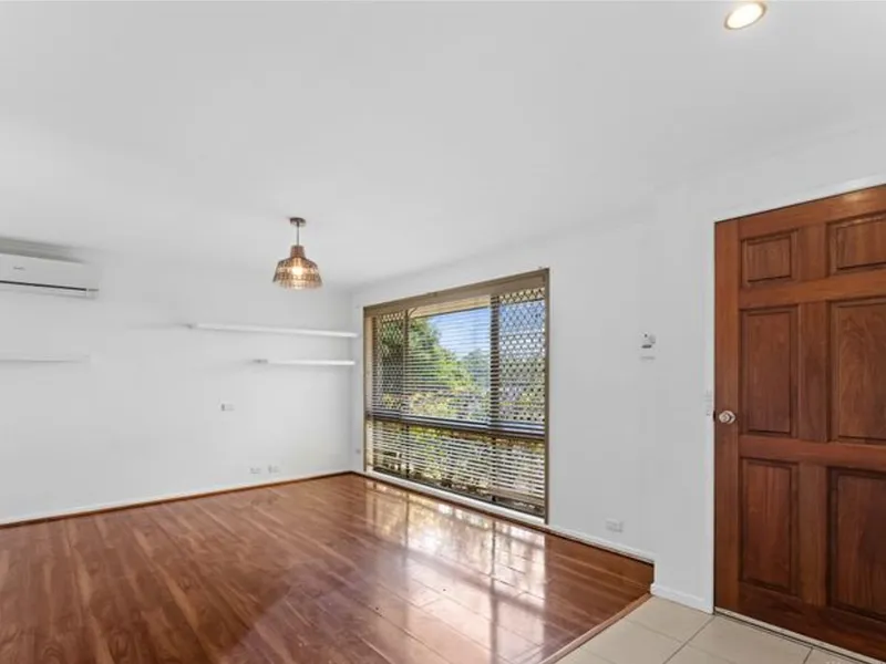 • Good sized lounge room with air conditioning, timber look flooring, curtains and blinds