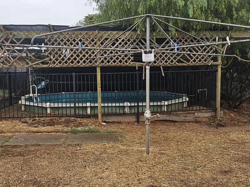 Outside, the property offers a large rear yard with a swimming pool, perfect for enjoying the warmer months. There are also storage sheds and a single carport providing additional convenience.