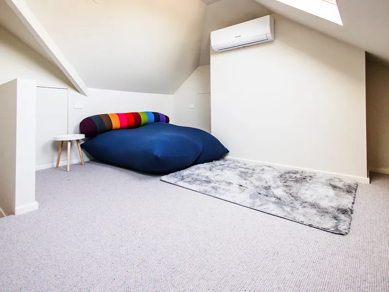 At its heart, a comfortable living, dining and kitchen domain provides everyday functionality and warmth. Two well-proportioned bedrooms with built-in robes, are complemented by a spacious central bathroom featuring a walk-in tiled shower and natural light from an internal light well. A versatile loft-style third bedroom or home office adds valuable flexibility for remote work or additional accommodation, while generous attic storage enhances practicality.