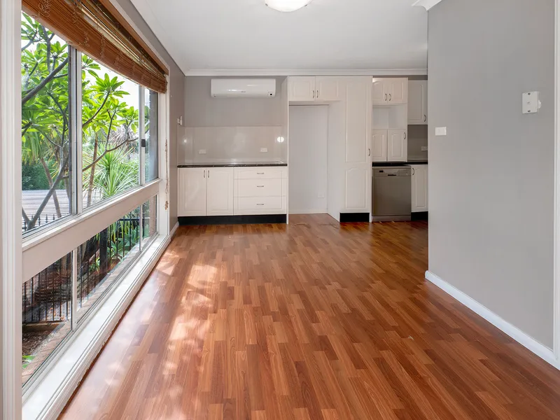 The kitchen is neat and functional, complete with dishwasher and adjoining meals area, while split system air conditioning ensures comfort in all seasons. All three bedrooms include ceiling fans, with two offering built in robes for added storage.